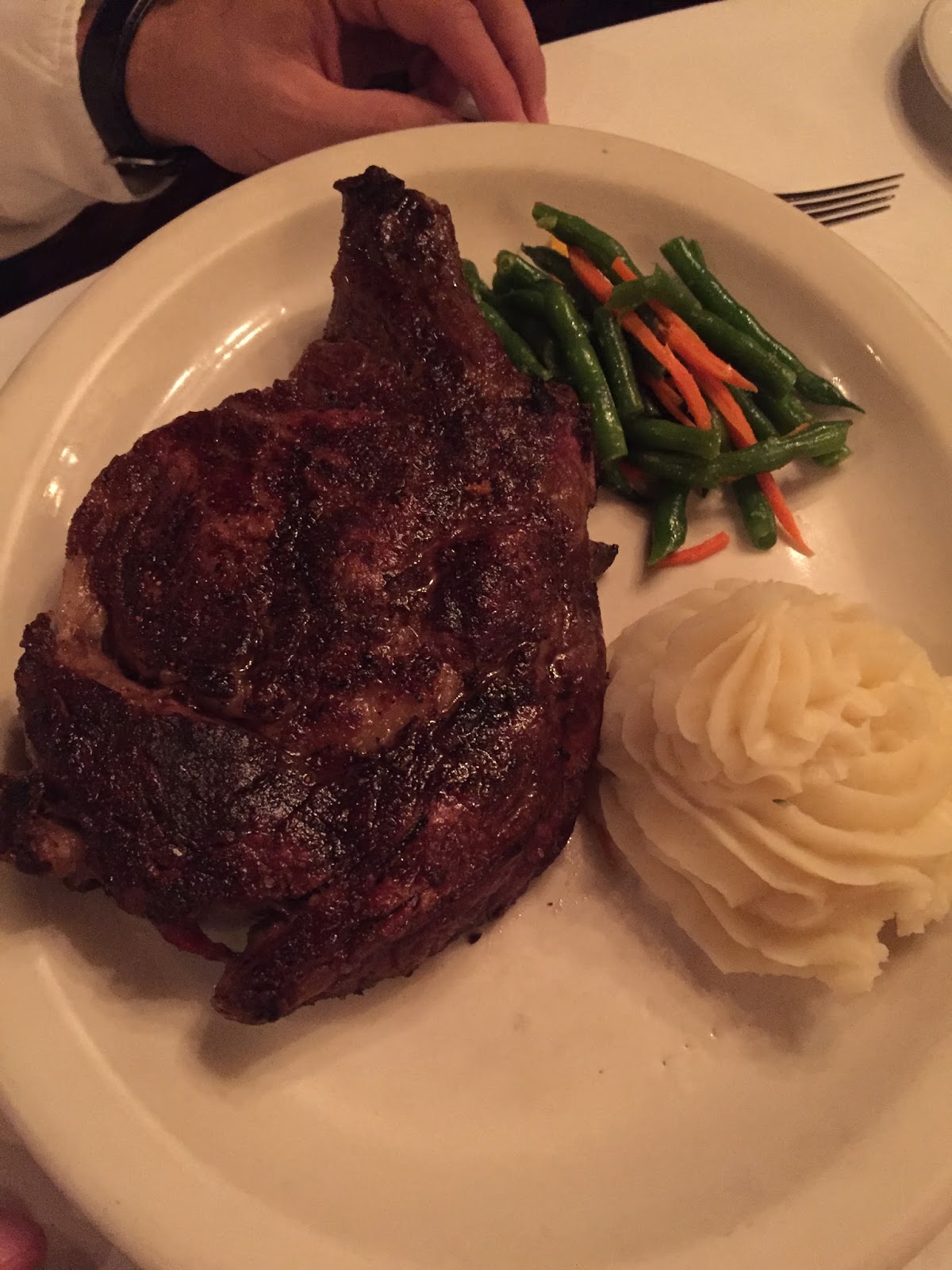 When at a steakhouse, you order steak, no? So I ordered the filet and Dane ordered the ribeye. Both were freaking amazing! I love when steak is cooked so well it practically melts in your mouth. Both entrees were served with garlic mashed potatoes and pan-fried vegetables.