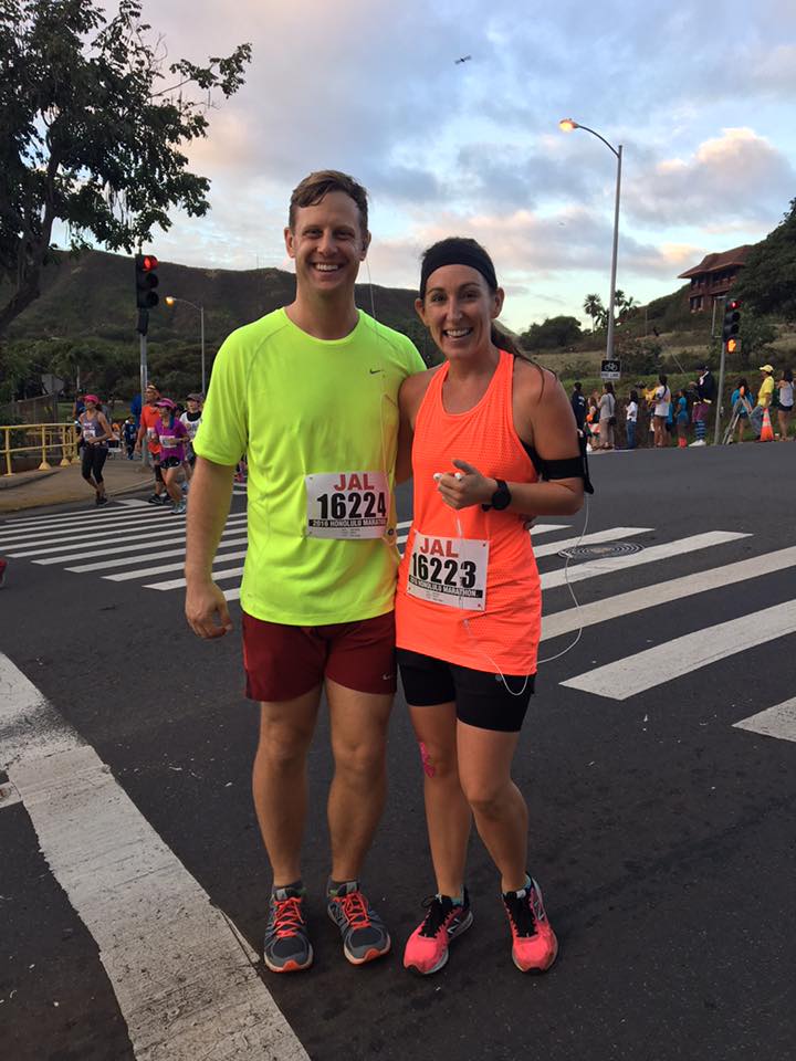 At mile 9, our friend Jill was waiting with ice cold water, bananas and Clementine oranges. They tasted so good, plus it was nice to see a happy, smily face cheering for us as we rounded the corner into Hawaii Kai and the sun began to rise.