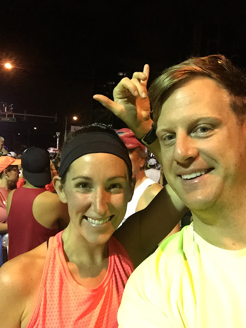 Let’s rewind to Sunday morning. Dane and I woke up bright and early at 2:45 to get down to the start area in time. It takes us a good 40 minutes to get there, plus with traffic and trying to navigate parking, we wanted to make sure we could get to the start by 4:15AM at the latest. Those port-o-potty lines are no joke!
